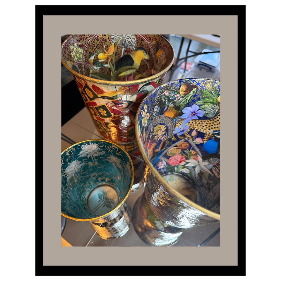 Gold leaf gilding and decoupage on glass